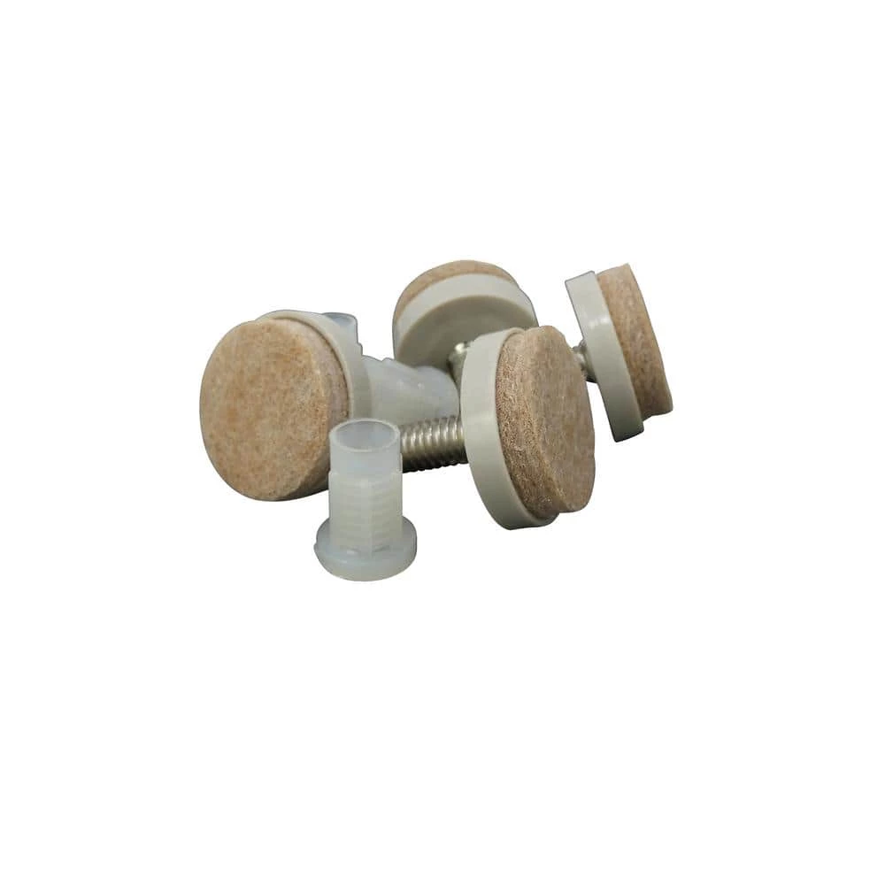 - Kit Contains (4) 1 inch round taupe plastic and heavy duty beige felt threaded bases + (4) plastic internal threaded inserts – 4 Pack