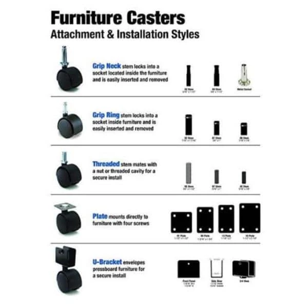 The Shepherd Hardware Medium Duty Ball Bearing Casters measure 2-Inch and feature a double race rubber wheel-plate. These casters are the industry standard for wood base office furniture. Double bearing raceways allow for instant swiveling and black soft rubber wheels provide smooth, silent operation on hard wood floors and chair mats. They come two per package.