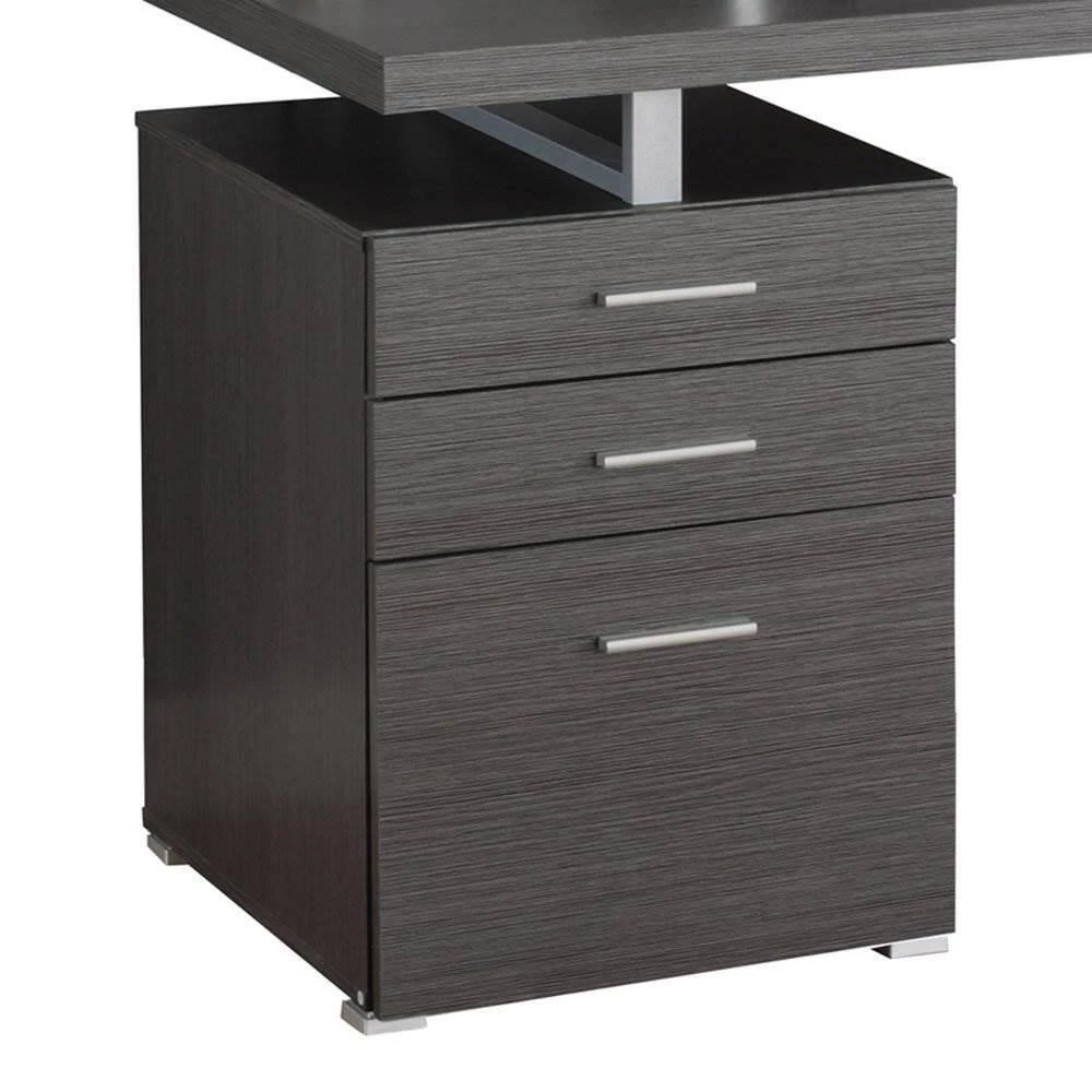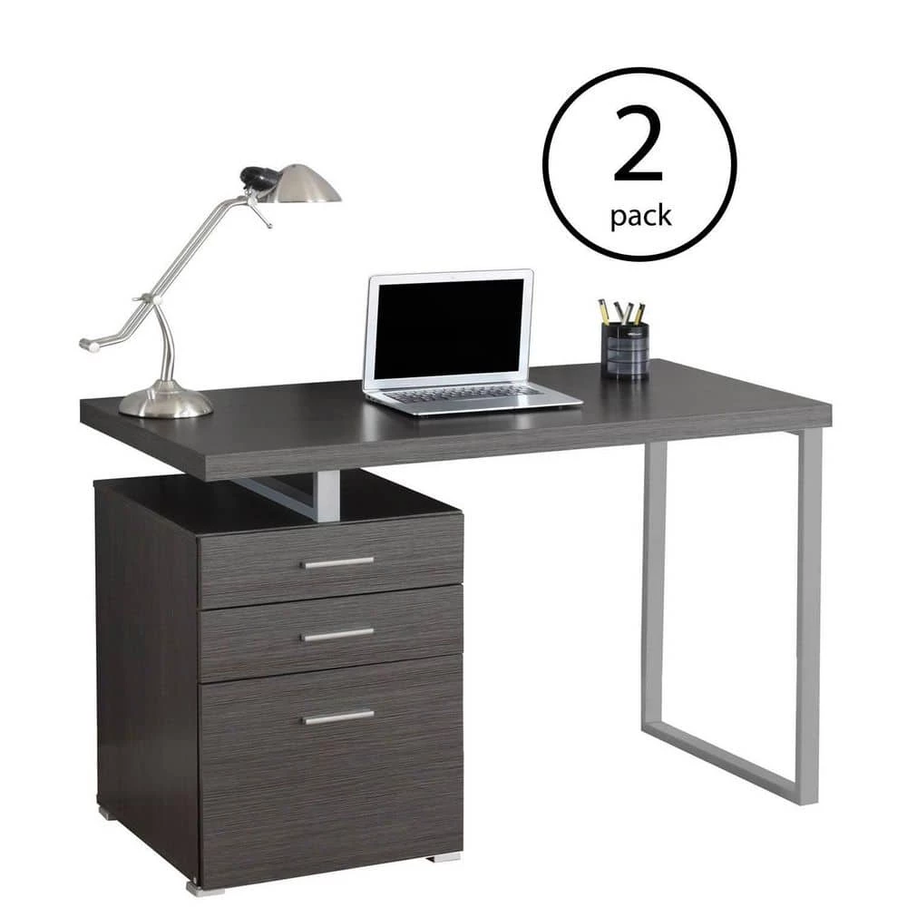 The perfect office needs the perfect desk to bring it all together and help you get your work done, which is where the Monarch Contemporary Gray Computer Desk comes in.Sleek and modern, this desk features an attractive wood veneer gray finish that looks great with a variety of contemporary, modern, and Art Deco styles. It can be assembled in either a right or left side configuration and comes with 2 drawers and a large file drawer to keep all your documents and supplies neat and organized.Get the most in both functionality and style in your study or office with the Monarch Contemporary Gray Computer Desk.