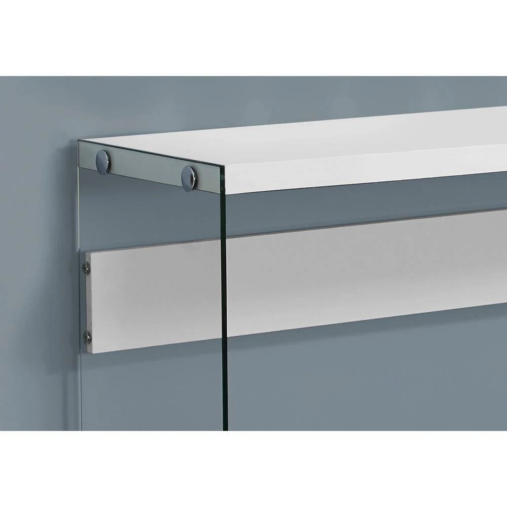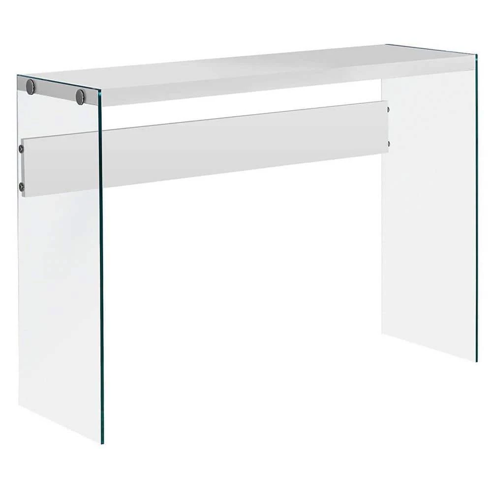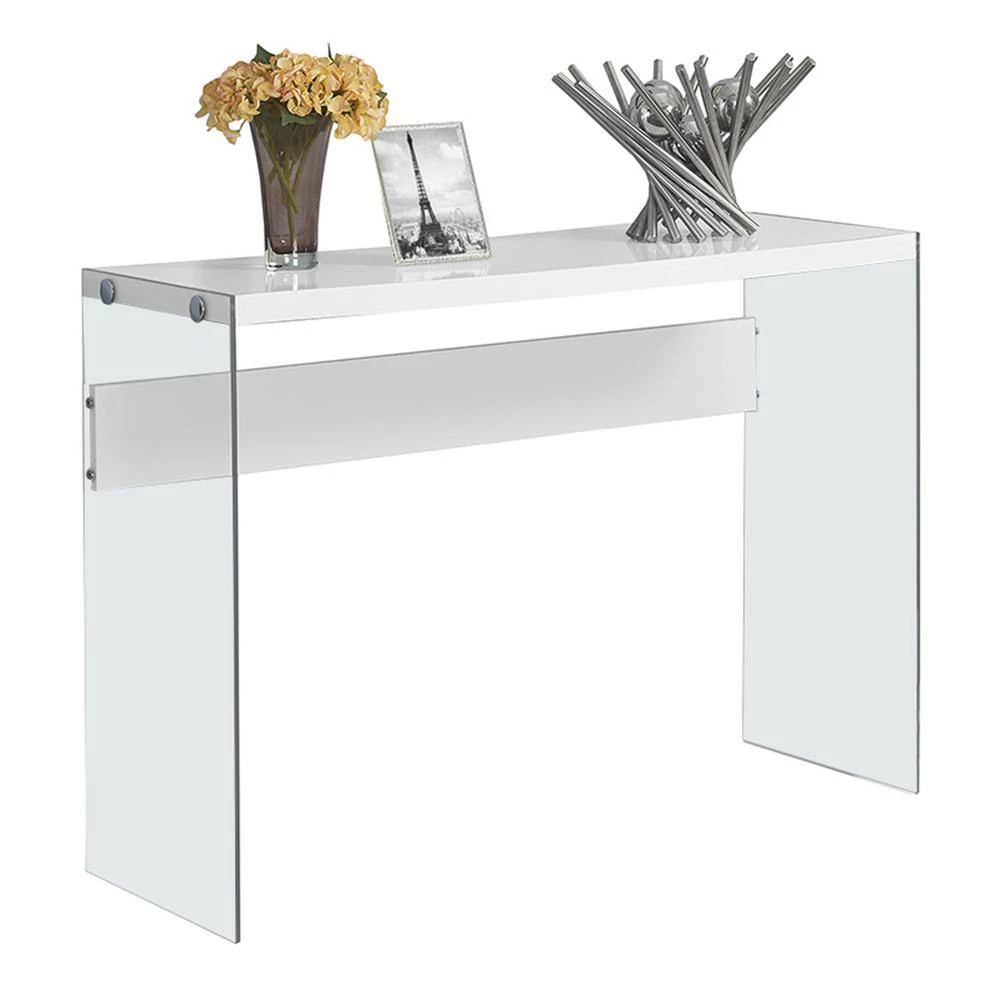 Enhance the look of your home with this trendy contemporary style sofa/hall console table. The rectangular top is finished in a sophisticated glossy white supported with sturdy and stylish 8mm thick tempered glass sides. This multi-functional console table has ample surface space to showcase decorative display items, a lamp, or simply as a chic accent-Piece in your living room, hallway or office space.