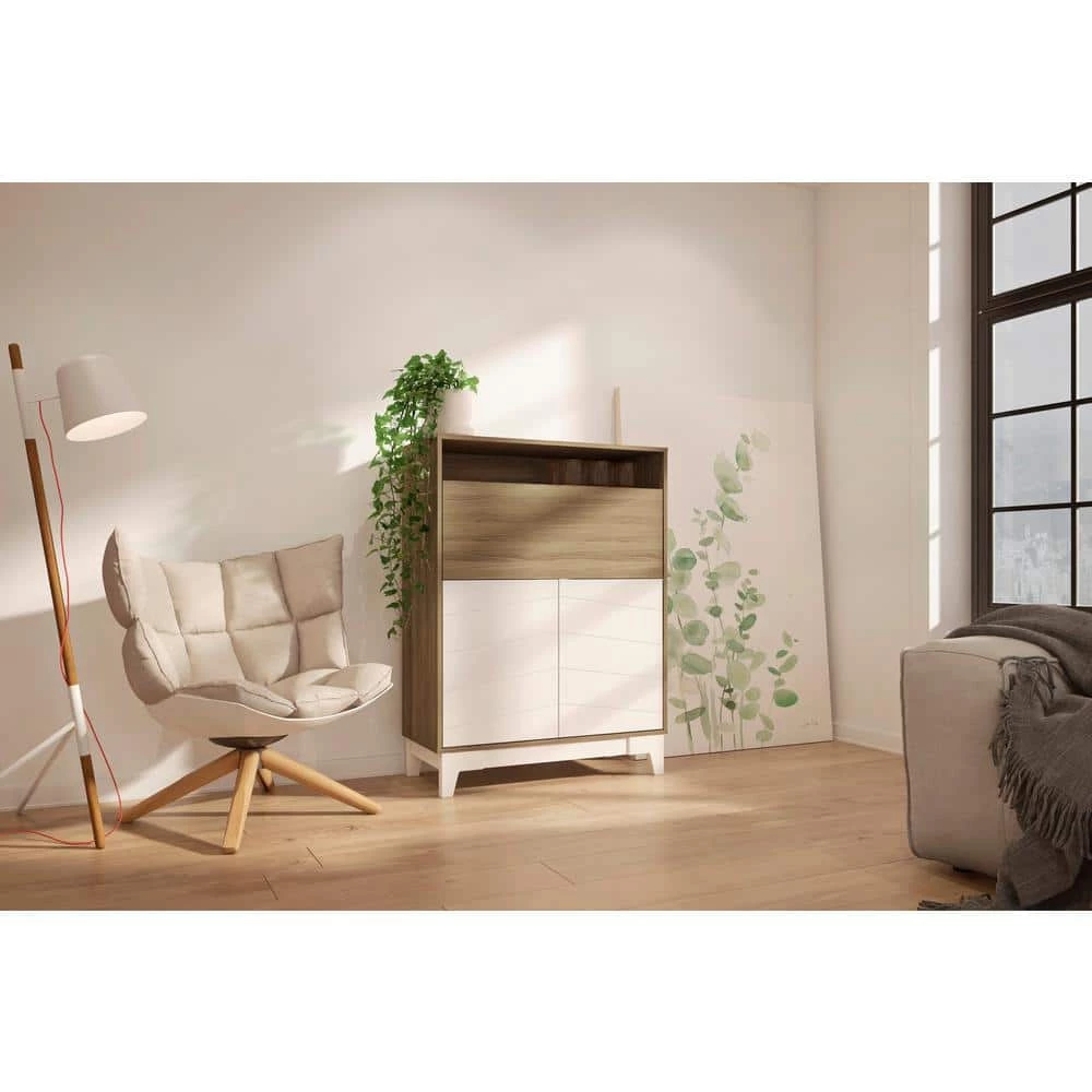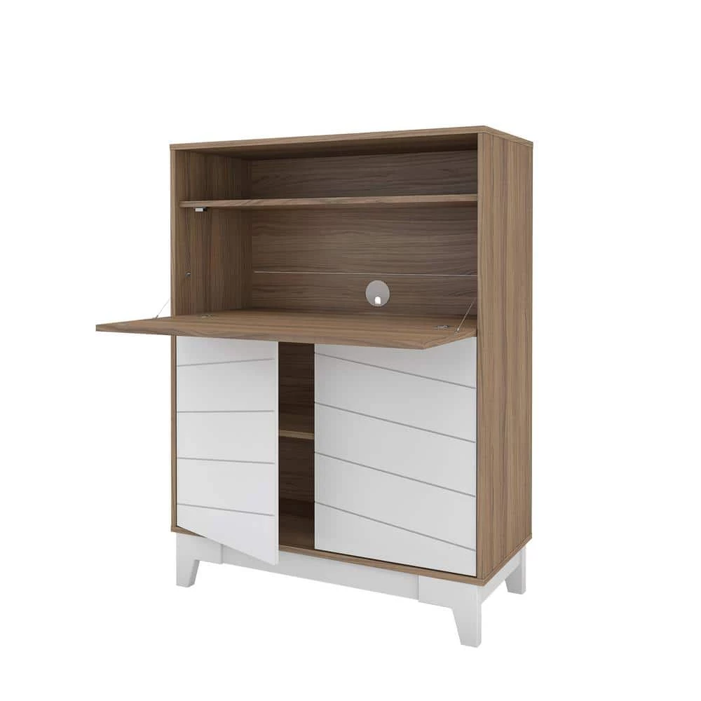 Boss Secretary Desk is the perfect all-in-one modern addition to any room of the house. While taking minimum space, it offers maximum functionality with a writing desk so you can work like a boss from home and also hide your personal belongings when the fold-down is closed. If you don’t use it as a desk, it can serve as a bar with plenty of space to hide away your precious bottles while the door is closed. The two accent doors at the bottom provide additional storage space with two adjustable shelves, ideal for your home office, bedroom or living room.
