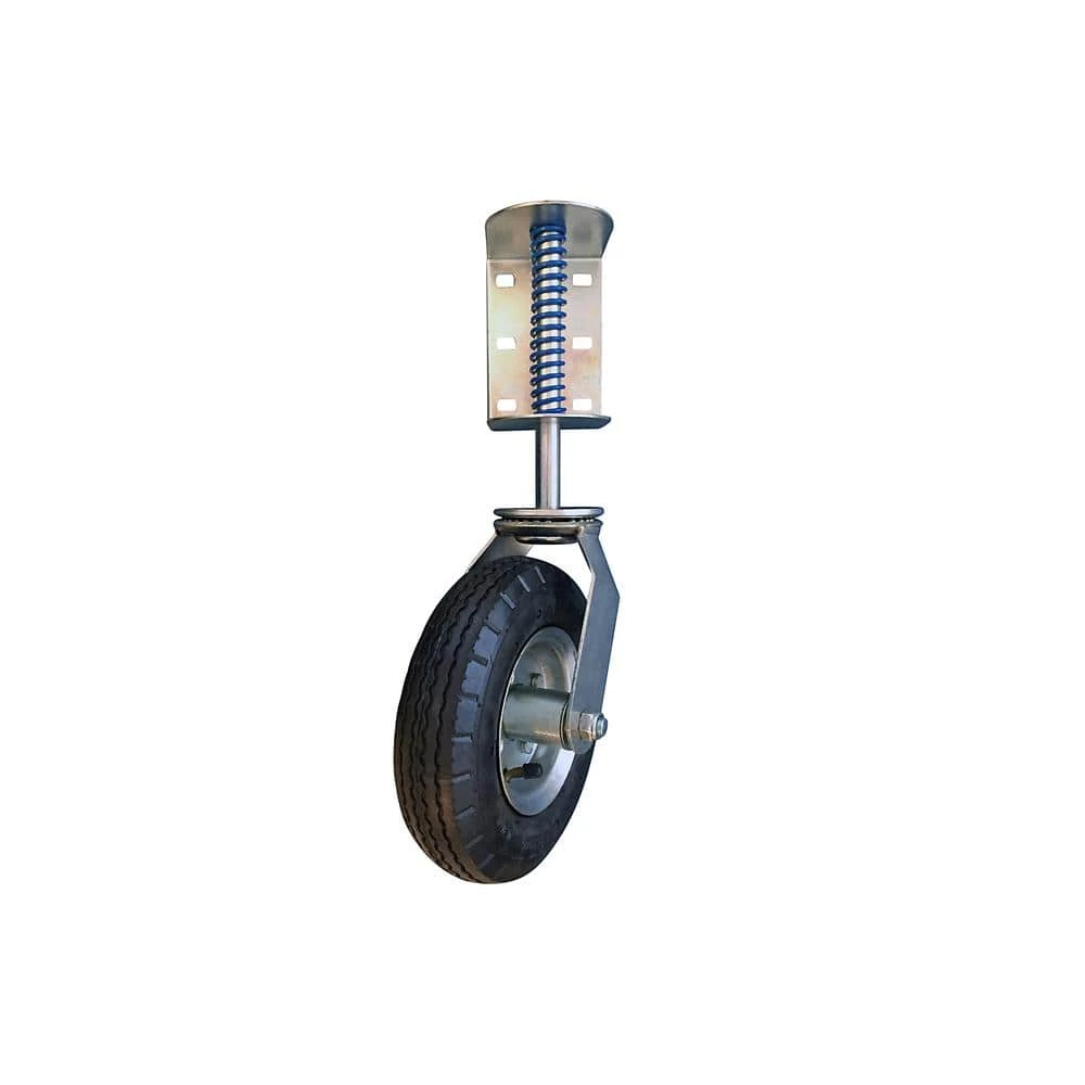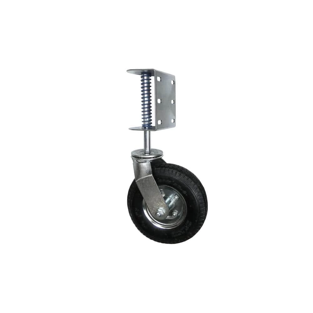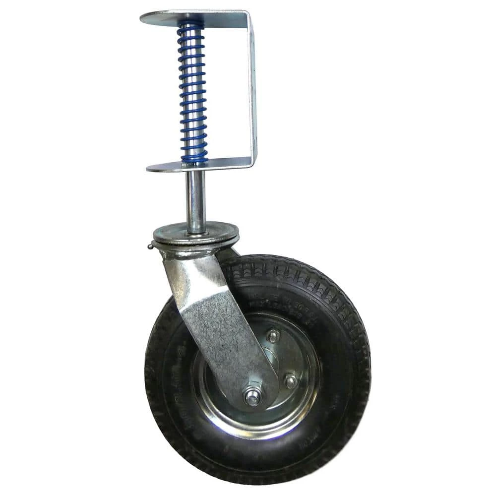 The Shepherd Hardware Pneumatic Gate Casters are designed to allow gates and fences to open and close easily. The 8 in. spring-loaded clamp acts as a shock absorber when the caster is rolling over rough or uneven surfaces and boasts a 200 lbs. load rating. 8 in. spring loaded pneumatic wheel swivel gate caster has a universal mounting bracket for use on wood or chain link fences.