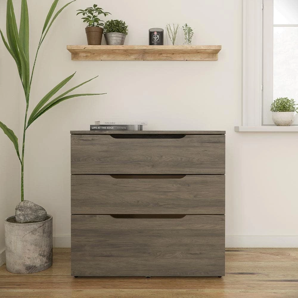 Arobas 3-Drawer Filing Cabinet from Nexera adds generous storage capacity to your home office setting. It features 2-drawers on solid metal slides and 1-large filing drawer on full extension ball bearing slides at the bottom. This filing cabinet is equipped with anti-tilt safety device and accommodates both legal and letter file sizes.