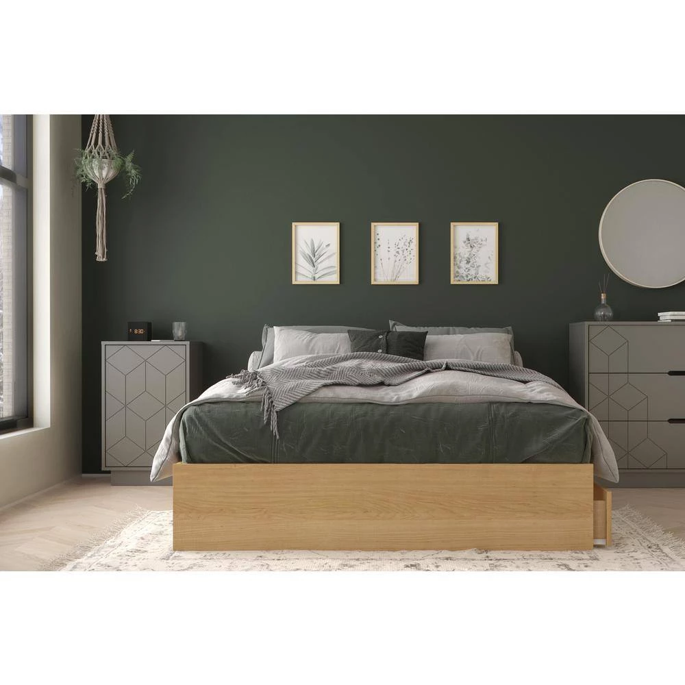 - Bundle number 402758 includes the full size storage bed and 1-door nightstand, in natural maple and greige (375405, 420167)