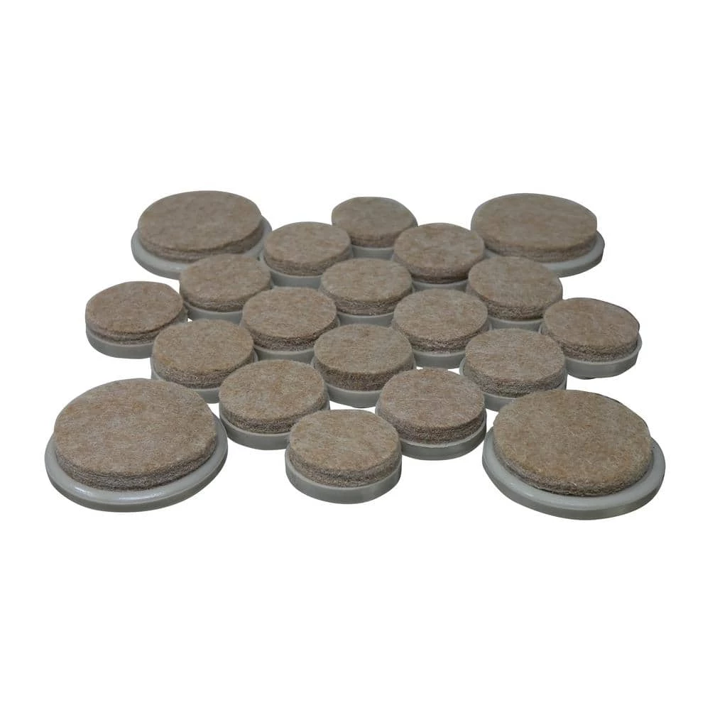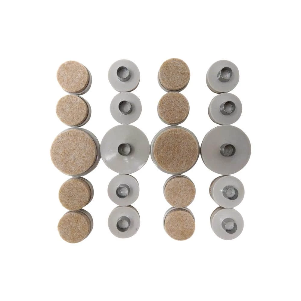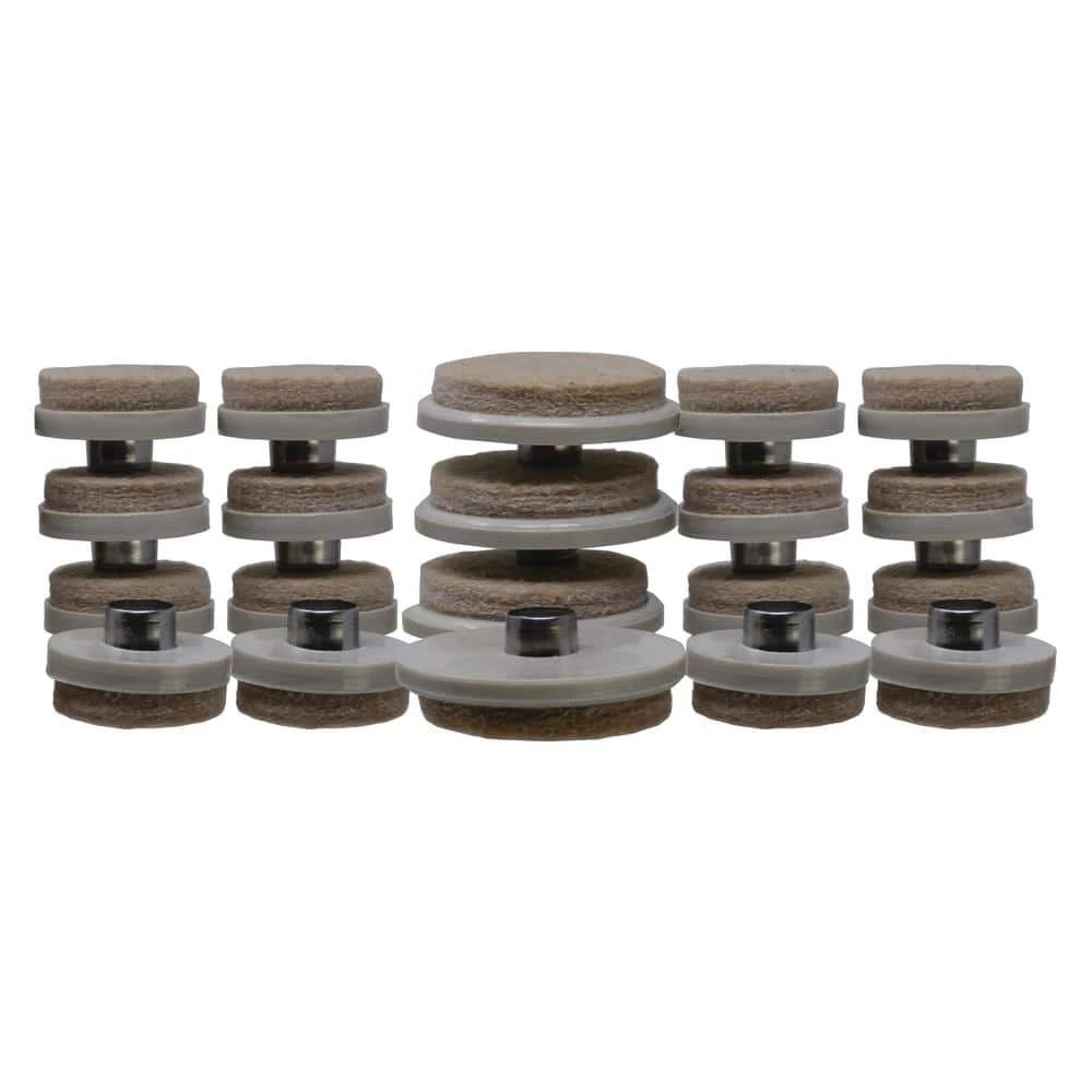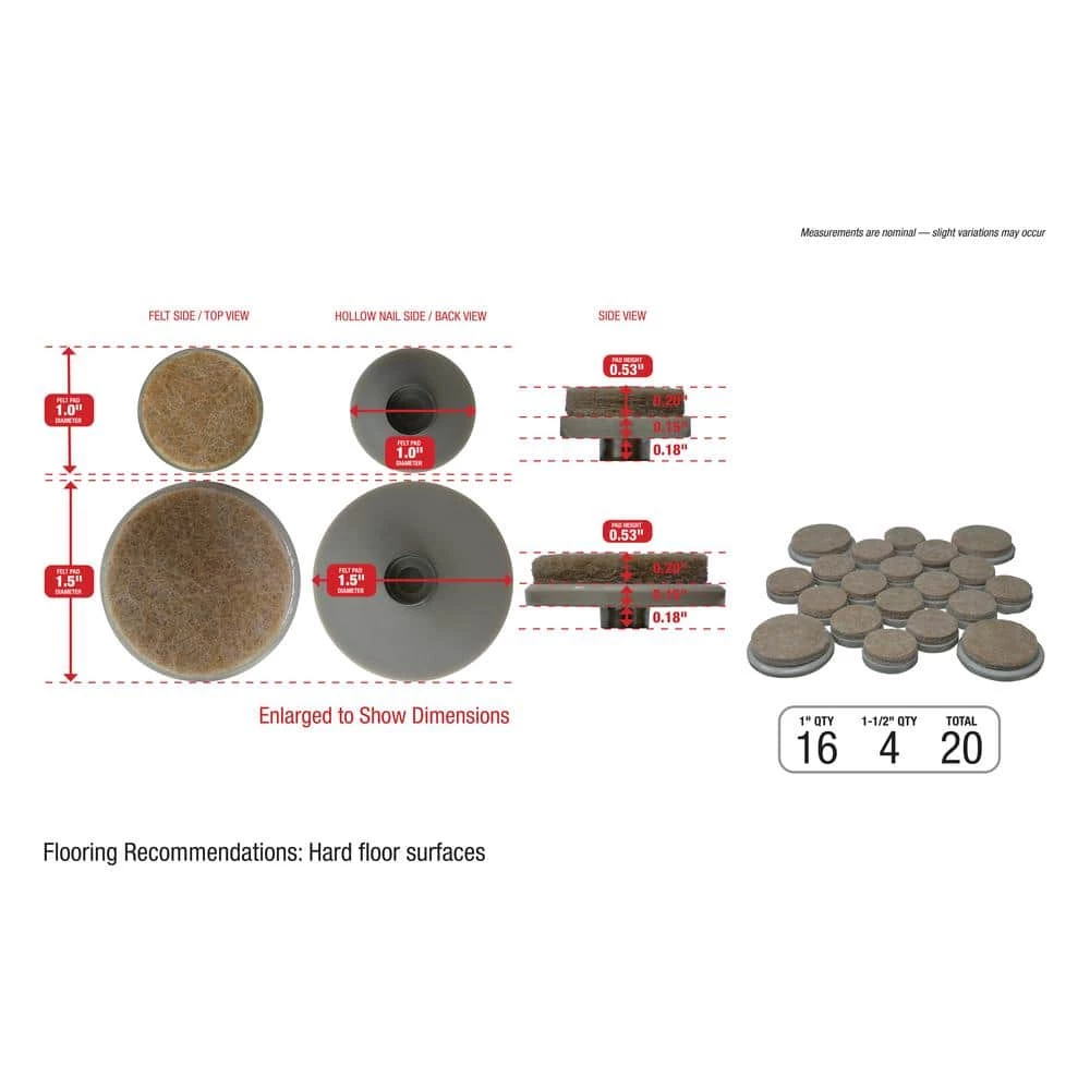 - Dinette Set Contains (16) 1 inch + (4) 1-1/2 inch diameter round beige felt pads with base and hollow shaft – 20 Pack