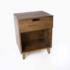 Solid Walnut Wood 22.5 in. H x 21 in. L x 18 in. W Nightstand with Drawer by ELUXURY
