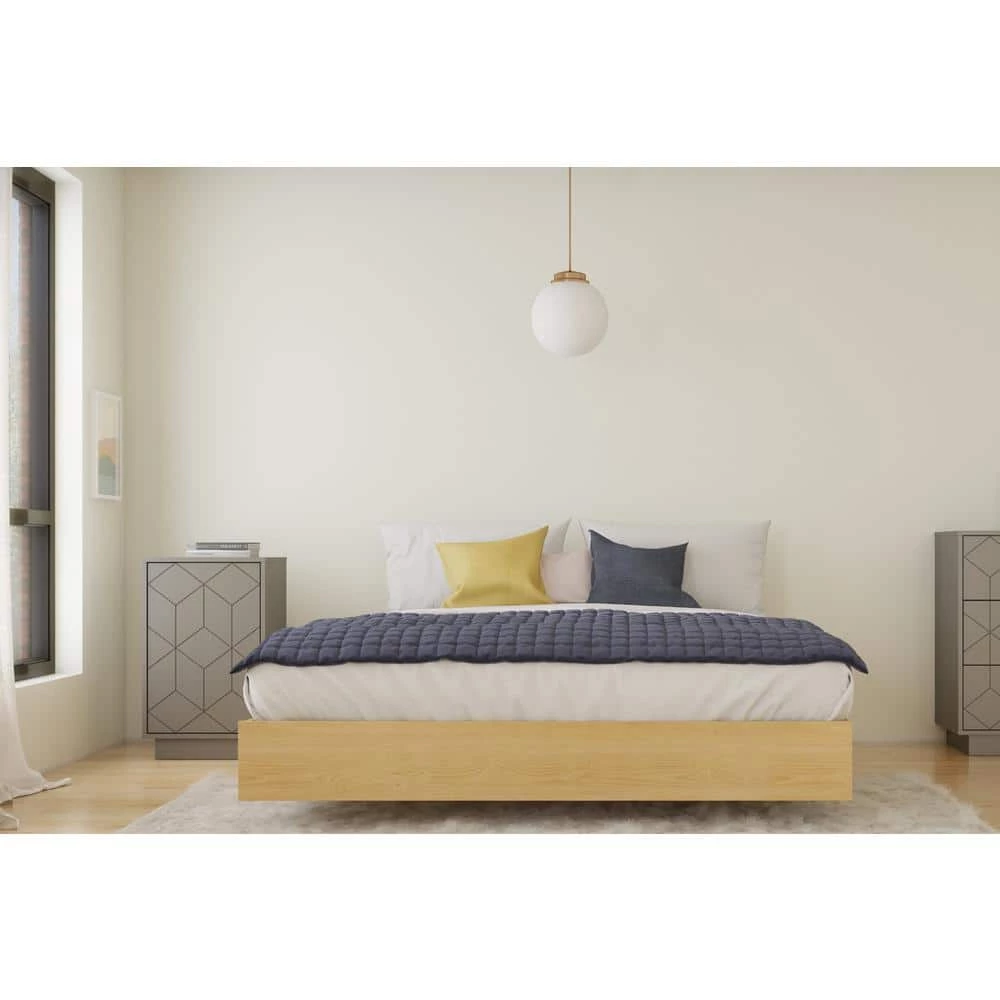 This urban bedroom collection from Nexera features a unique geometric design paired with modern sleek lines for a stylish looking place to unwind. Nexera queen size platform bed in Natural Maple can be paired with different Nexera queen size headboards to create a complete bed set. Its unique & modern design gives the impression the bed floats above the ground, giving the entire room an airy feel. This bed also features a unique metal and hardwood slat construction allowing for easy assembly, sturdy construction and easier handling. With its geometric textured front, our 1-door nightstand will add texture and design to your bedroom. The push-to-open device on the door adds to the sleek design of this nightstand and the shelf inside adds practically to your storage.