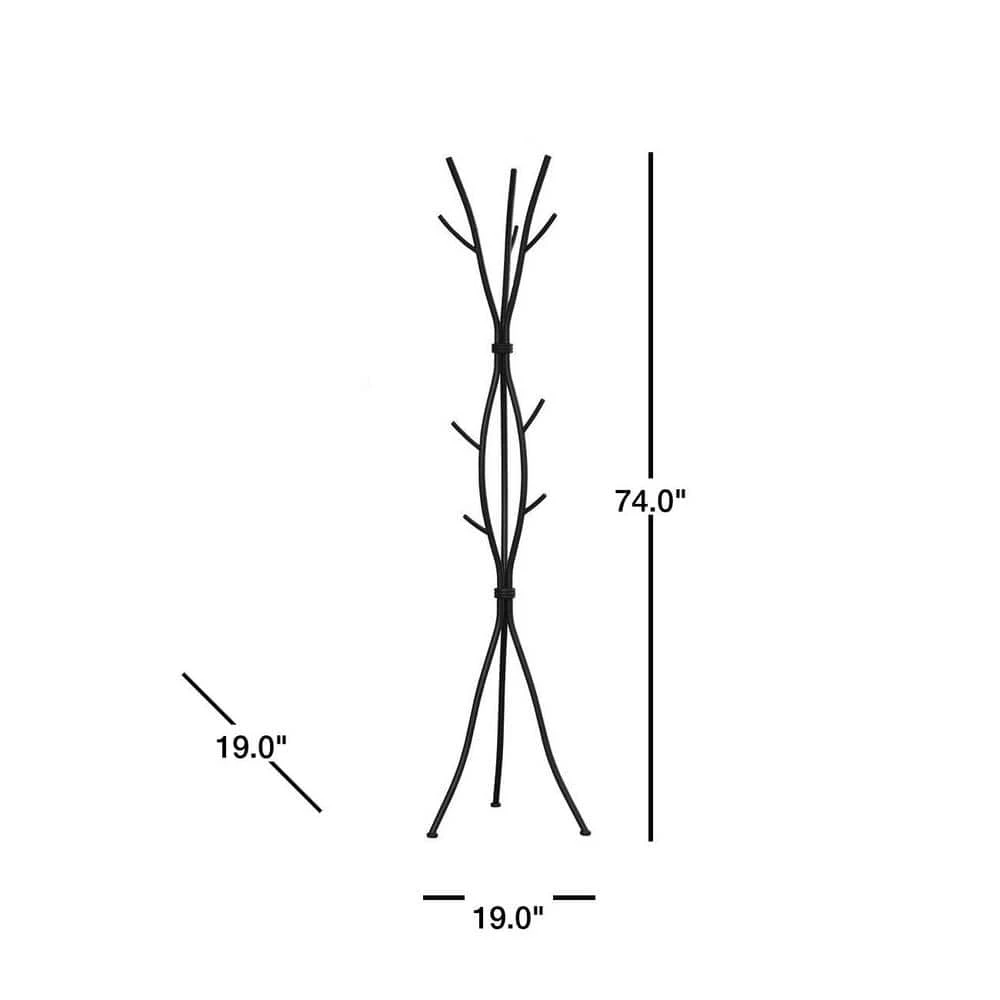 Enhance the look of your entryway or hallway with this unique branch inspired 74 in. high coat rack. The 8 hanging hooks allow you to keep your coats, jackets and hats organized and all in one place. The sturdy metal construction paired with a hammered black finish makes this updated spin on a classic design a must have for any home.