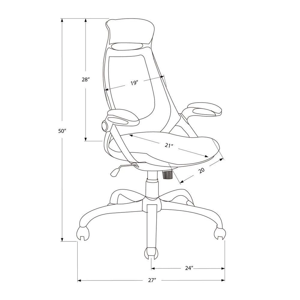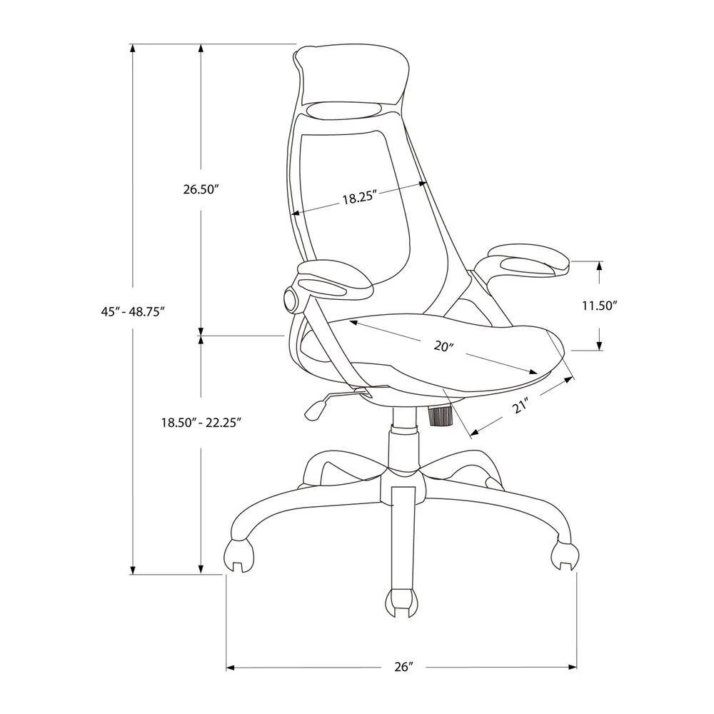 - Seat height: 18.5 in. to 22.25 in. H; Seat dims: 21 in. W x 20 in. D x 28.5 in. H (back rest); Arms: 10.5 in. L (9.5L in. padded)x2.5 in. W x 8 in. H