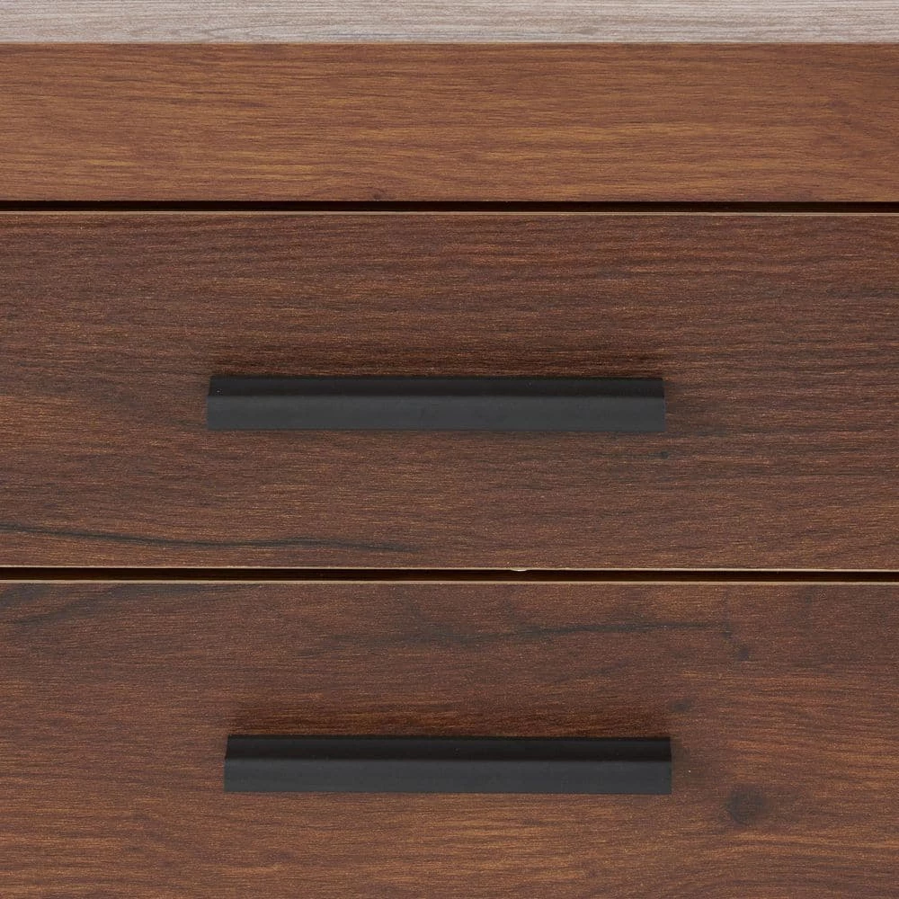 - Stylish, reclaimed wood look combined with black colored drawer handles complements any home decor