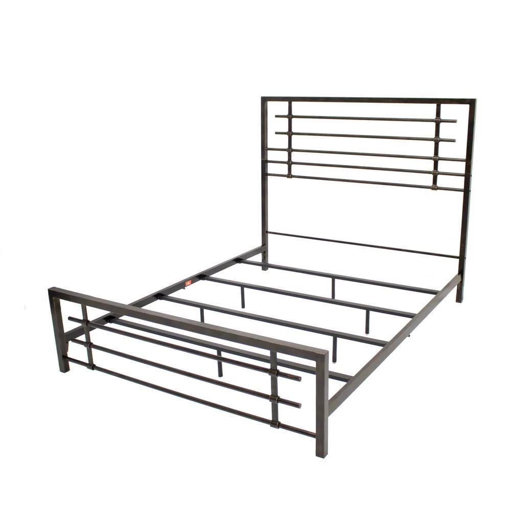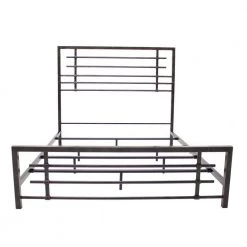 This industrial-style bed features metal piping in a burnished black finish that adds a sophisticated look to your bedroom. This product is sure to last years with its sturdy steel outer frame and steel slats. Get this bed into your home quickly and easily, thanks to the UPS-shippable design and easy assembly.