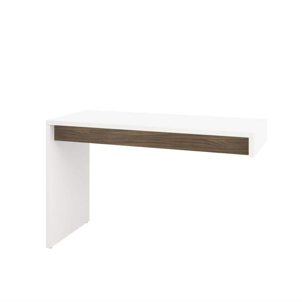 Young and fresh, the Liber-T Collection from Nexera has everything to please; its modern white finish with chic walnut accents and its mix-and-match design allows you to create your own very trendy home office or entertainment set. This bundle includes a reversible desk (X2) and a file cabinet. Use the Liber-T Filing Cabinet with Liber-T Reversible Desk Panel to create a flexible work station. The desk panel is reversible and can be installed on the right or left side of the file cabinet. 2 Liber-T work surfaces can be installed on the filing cabinet to create a functional 2 people work station. Each piece in the Liber-T Collection is also sold separately so you can add extra storage or functionality to your home office with additional pieces