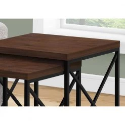 2 Piece Square Nesting Wood Accent Coffee Table Set, Cherry and Black by Monarch Specialties