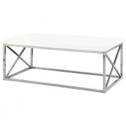 White Chrome Metal Contemporary Design Living Room Coffee Table and Desk by Monarch Specialties