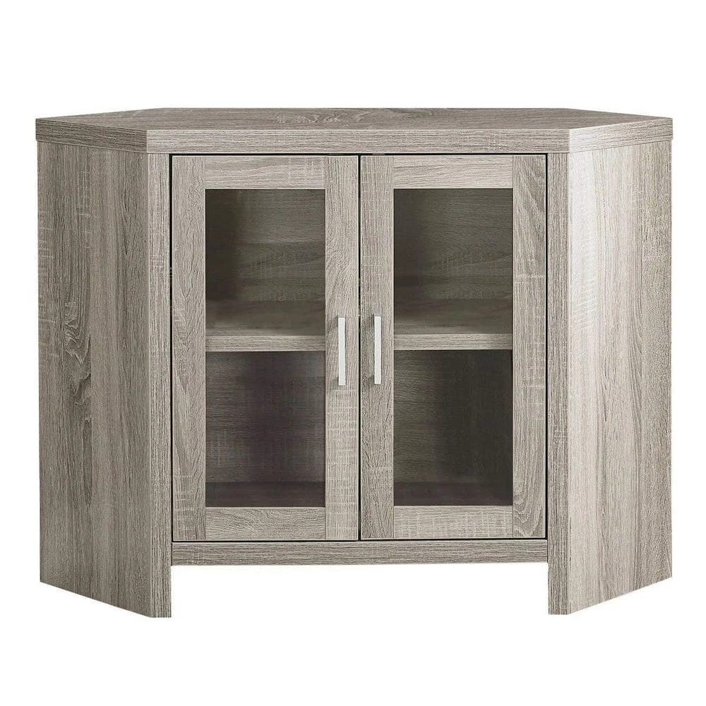 Give your TV the best seat in the house with a TV stand that gives your space the perfect blend of form and function with the Monarch Specialties Modern Corner Television Stand. This 42-inch corner TV stand is a contemporary and versatile addition to your home entertainment setup. Fitting nicely into a corner, it will free up valuable floor space and open up your living room making it the perfect space-saving unit. Electronic components and accessories are kept organized in style behind two glass cabinet doors with a fixed shelf. Finished in a chic dark taupe that will blend well with any decor this tv stand will be a great addition to any entertainment room. With thick and sturdy wood panel construction and aged wood, dark taupe finish, this entertainment center goes with a variety of contemporary, modern, and art deco stylings. Constructed of heavy-duty materials, this entertainment center is built and durable to last you through many years. Complete your living room space and give your TV that final touch with the Monarch Specialties Modern Corner Television Stand.