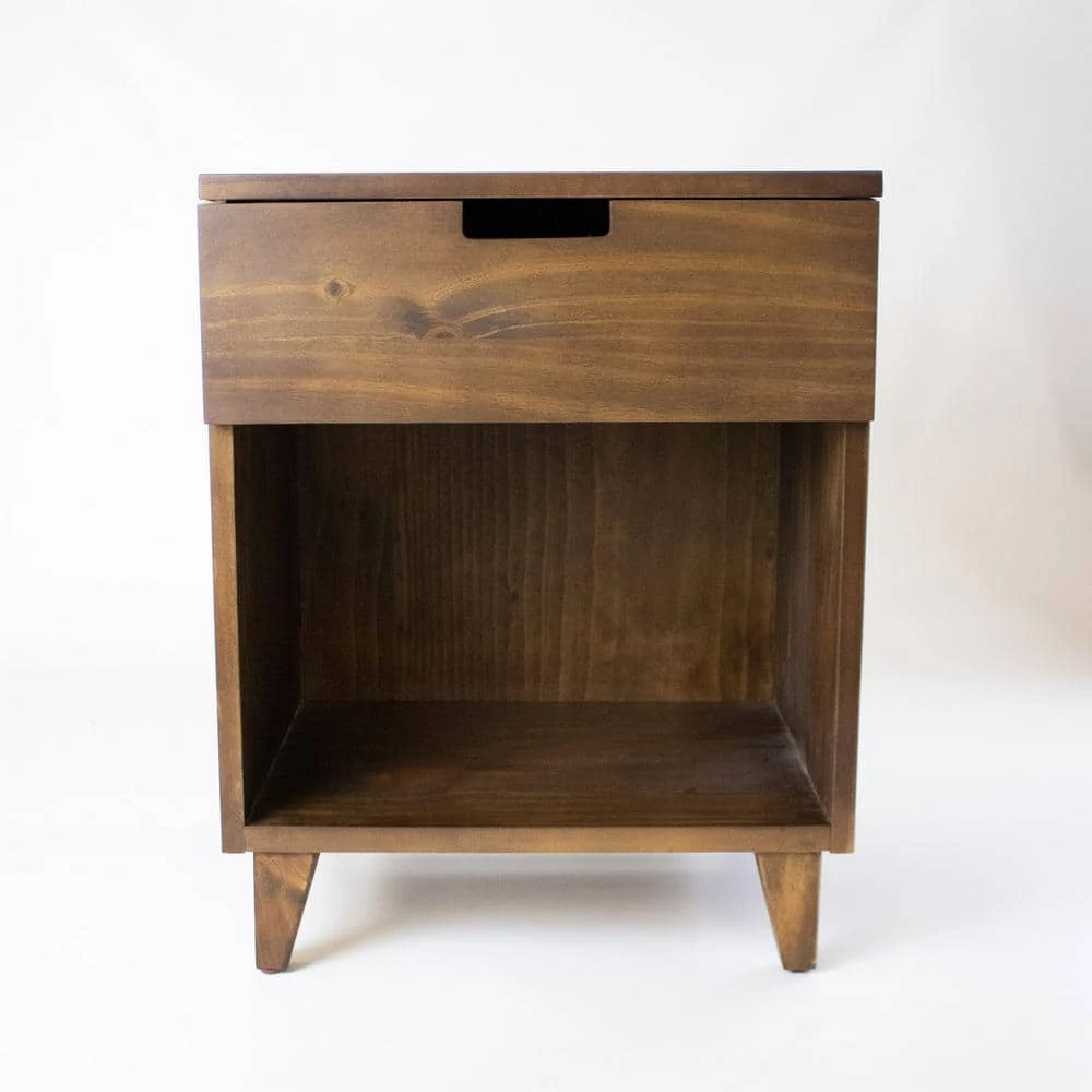 This modern nightstand features clean and simple lines that adds a comfortable and contemporary elegance to any bedroom. Constructed with solid wood and a one-drawer design, this nightstand gives you the ability to show off decor or utilize as storage with the open area underneath. Whether you’re looking for mid-century modern or traditional, this nightstand will add a touch of transitional style and functionality to any bedroom.